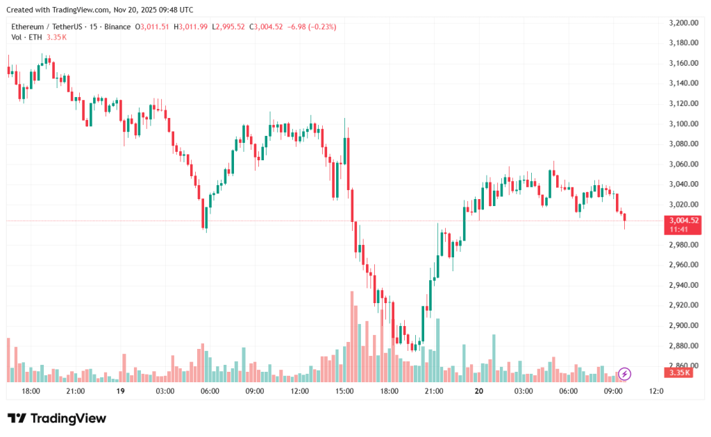 На момент написания вторая по капитализации криптовалюта торгуется в районе $3000.
